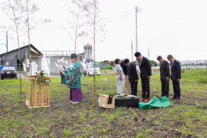 新たな養豚施設の増設工事に先立ち、地鎮祭を執り行いました。